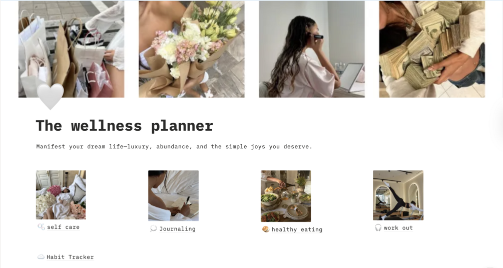 A planner for the girl who’s in her soft life era — balancing wellness with a touch of luxury. Focus on gratitude, self-care, and the art of slowing down. Perfect for creating peace and abundance in your everyday routine.